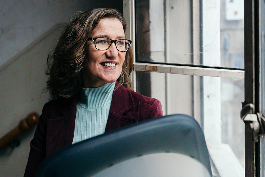 Ze kijkt met een holistische blik vanuit de markt en klantbehoeften en houdt rekening met de identiteit van het bedrijf.
